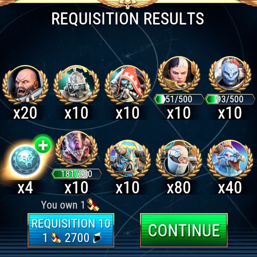 - Got the last Legendary Orbs needed to promote Calgar to Blue Star Legendary rank and open up access to the Rogue Trader.