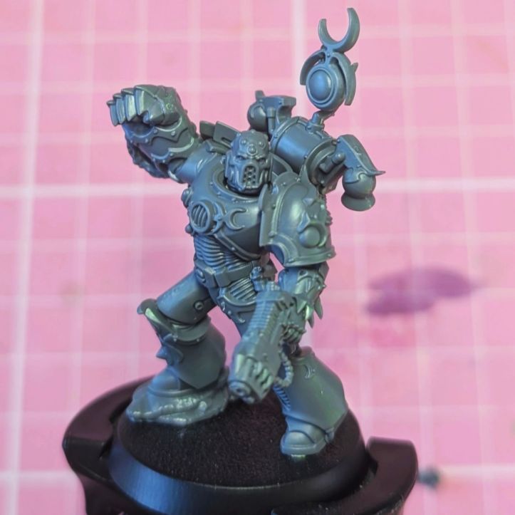 Wanted a Legionary who looked particularly brutal and the Noise Marine head felt like the perfect fit and then threw in some spikey Raptor arms in the Power Fist and Plasma Pistol as I really enjoyed the pose as if he’s ordering his squad of renegade raiders onwards!