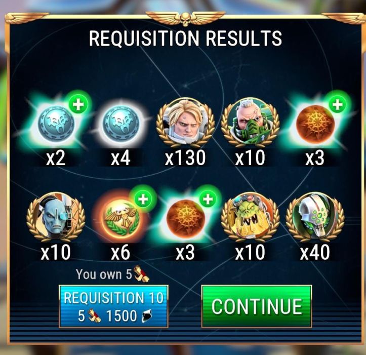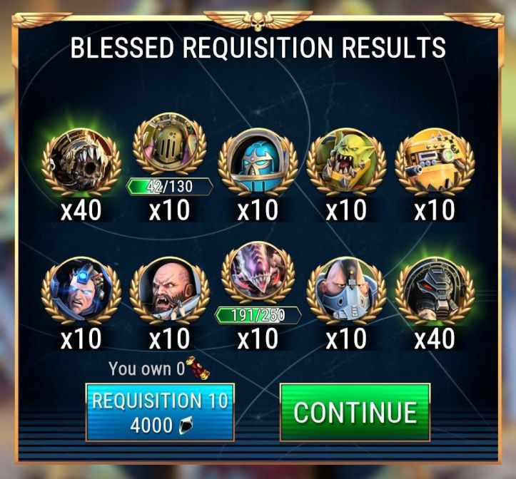 - Thanks to the Adepetus Mechanicus event I had a couple of 10 req. pulls. One of Bless Requisitions (the Black Legion ones) and one of regular Requisitions. I leave the outcomes of those below without further comment…